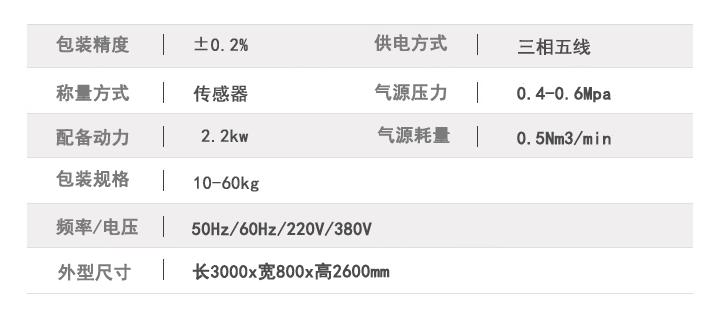 粉末包裝機技術參數: