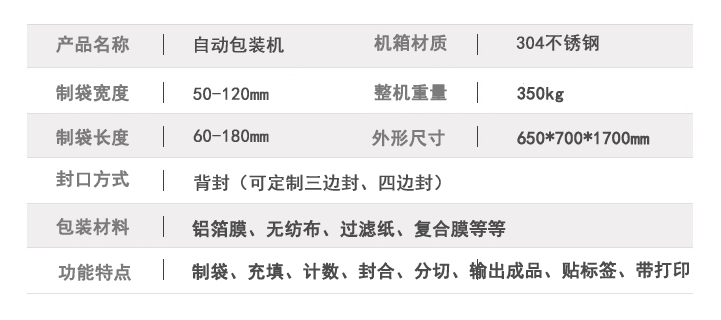1、包裝范圍廣泛:適用各種狀態、性質的粉劑;
